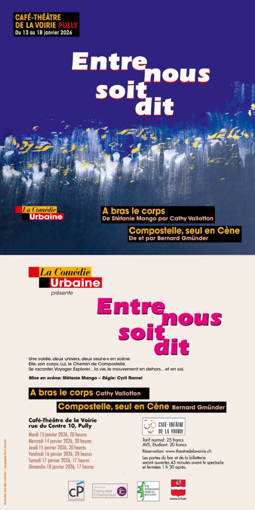 mercredi 25 mars 2026 à 20h00 Une comédie écrite par Karine C (lauréate 2025 de la bourse SSA, Société Suisse des Auteurs, catégorie « humoriste confirmée ») Après cinq seuls-en-scène plébiscités et …
